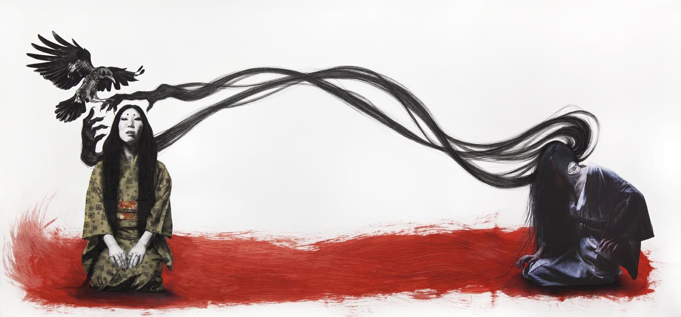 Each of my EDO drawings are tiny visual phrases of my overall themes of life/death and living, which involves feeling love and pain. I feel like I still have a lot to explore with integrating color and washi paper so I tend to still focus on crows or folklore.