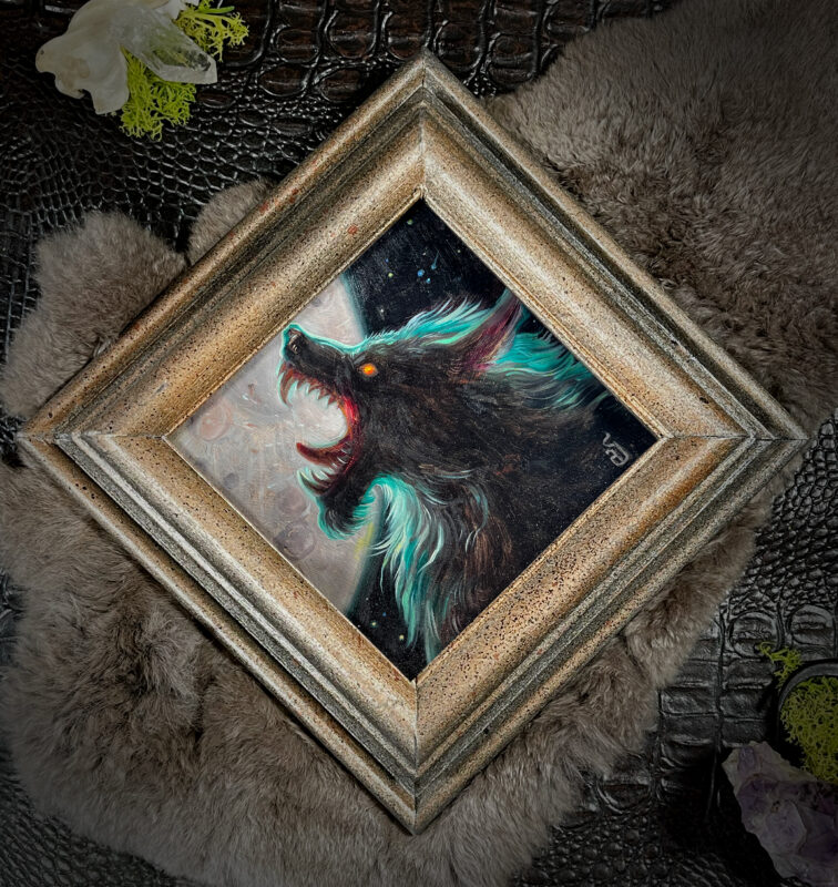weave their way into her illustrations, leaving the viewer guessing at origins, influences, and ancestry. April’s work allows the viewer to dive imaginatively deeper, and reconsider whether dragons might be real, or whether werewolves exist to stalk the streets at night.