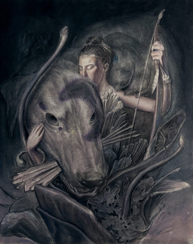 I’m an illustrator originally from Ft. Lauderdale, FL currently living in West Chester, PA working primarily in science fiction and fantasy genres. I graduated from the Maryland Institute College of Art in 2019 with a Bachelor of Fine Arts in Illustration. My love for drawing began in early childhood as a way to connect with my favorite stories, worlds, and games. I love to depict fantastic characters and tell stories through my illustrations which are inspired by dreams, myths, and the ancient world. My overall goal with my work is to try and depict intimate moments in narrative scenes through limited color palette and layers of traditional texture. When not drawing, you can find me running on the trails or thinking about my next project.