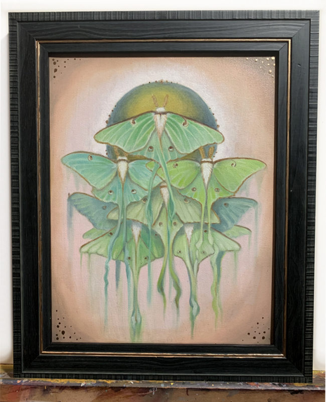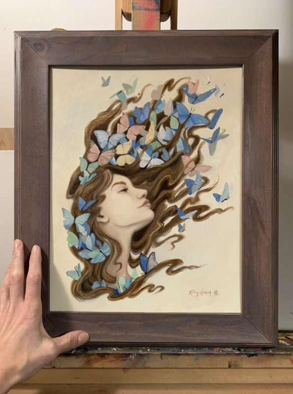Kelley creates new pieces every month! Feel free to contact her for a current list of work available from the studio. Bio: Kelley is inspired by the mysterious. She grew up in a house by the woods surrounded by animals and wilderness, so many of her themes bring together strange nature, mortality and spirituality. Using archetypes of characters from folklore and myth as well as her own stories, she enjoys portraying unusual tales that symbolize our hopes and fears. Kelley earned her MFA from the School of Visual Arts and her BFA from the Rhode Island School of design. Her favorite mediums are oils on wood and pencil on paper, and she loves to create her work by hand. Her favorite genres range from gothic and steampunk to classic fantasy and legends. Traveling is her only other passion equal to a career in art and is a vital component in inspiring her work.