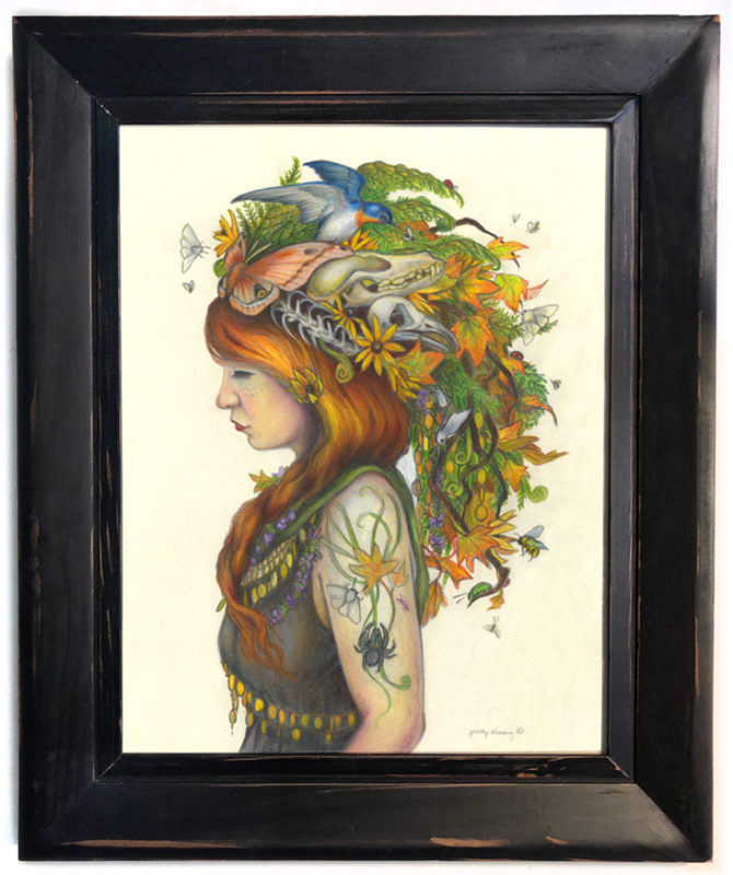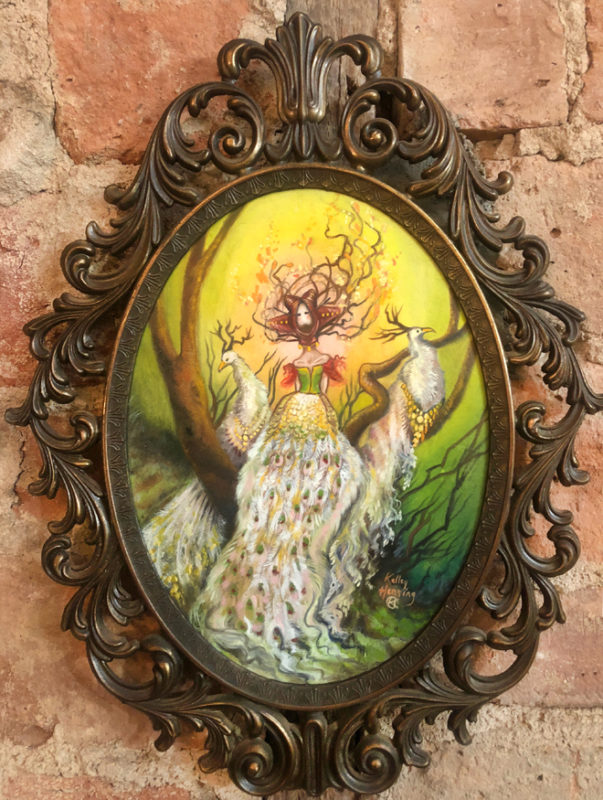 Bio: Kelley is inspired by the mysterious. She grew up in a house by the woods surrounded by animals and wilderness, so many of her themes bring together strange nature, mortality and spirituality. Using archetypes of characters from folklore and myth as well as her own stories, she enjoys portraying unusual tales that symbolize our hopes and fears.