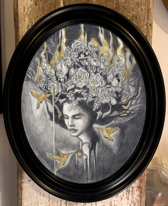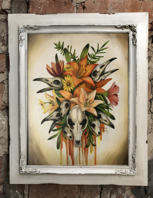 Bio: Kelley is inspired by the mysterious. She grew up in a house by the woods surrounded by animals and wilderness, so many of her themes bring together strange nature, mortality and spirituality. Using archetypes of characters from folklore and myth as well as her own stories, she enjoys portraying unusual tales that symbolize our hopes and fears.