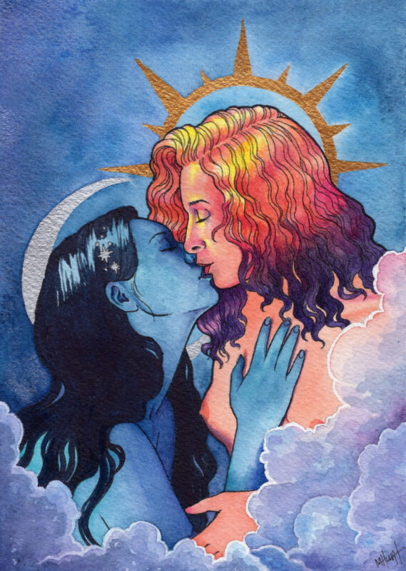 Michelle is a Michigan-based artist working primarily in watercolor and ink. She paints in a romantic style inspired by Art Nouveau and Pre-Raphaelite art, exploring queer identities and relationships in fantasy settings. Many of her subjects are original characters pulled from collaborative stories, or figures inspired by folklore, mythology, and fairy tales.