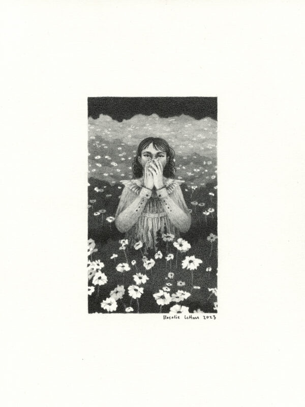 My work is inspired by old books, myths, fantasy stories and walks on foggy days. In my illustrations I explore the dark and the moody, but also peaceful scenes. I like working with graphite on smaller formats and often color my drawings digitally.