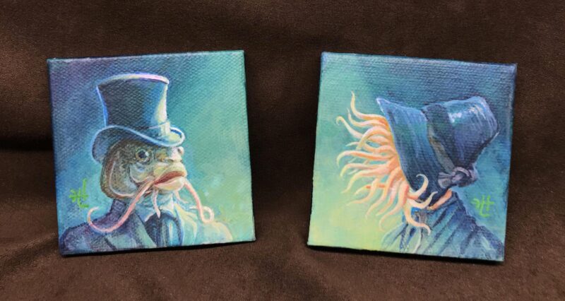 She likes making art that tells stories and drawing mostly amiable monsters.