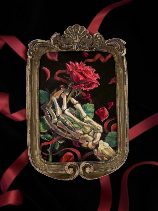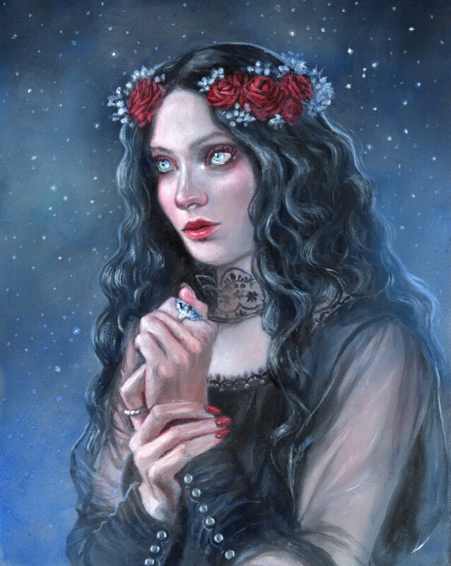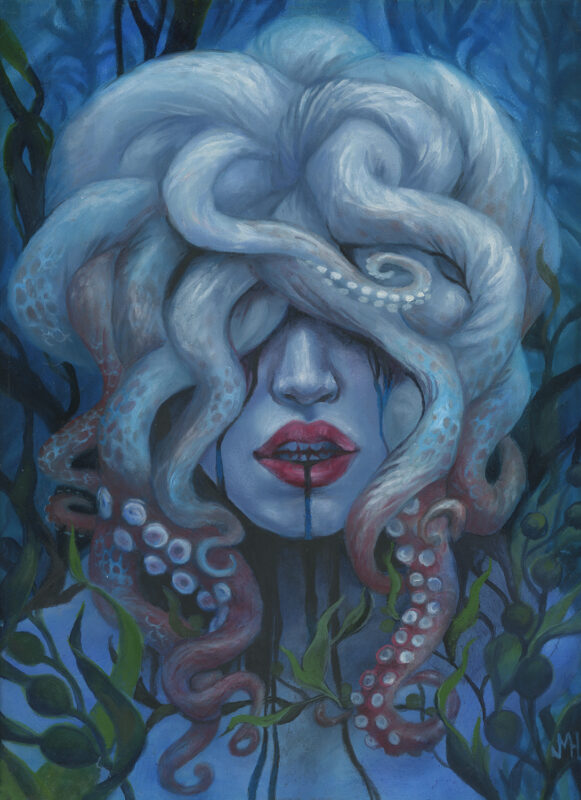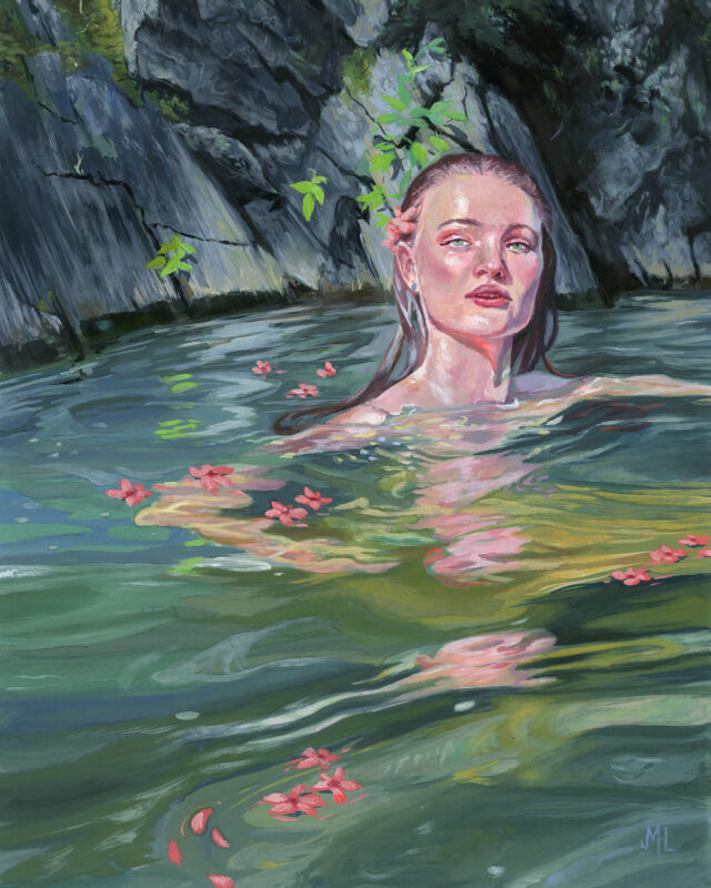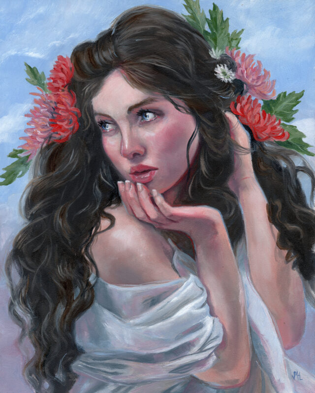 The work of Jennifer Hrabota Lesser explores the edges of discomfort while maintaining the serene and and calm facade expected of modern women. Her work references fables, mythology, social and religious constructs, and where these constructions fail to support the unyielding center. Her subjects are often embattled, finding or losing their own power. They deal with what the unconscious conveys beyond the armor of the exterior, and the need to cover up the unseemly with something beautiful.