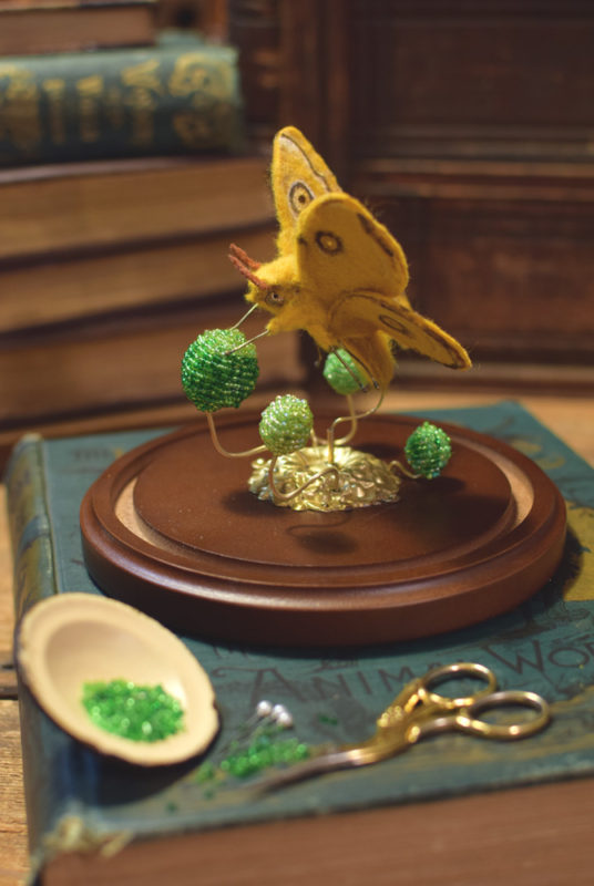 Lana Crooks loves the antique, the creepy, and the mysterious. A textile sculptor by trade, she strives to recreate complicated and delicate skeletal pieces in wool. Constructing creatures from fabrics and found objects, she is a purveyor of faux specimens and soft curiosities. Her personal works are exhibited globally and she is frequently sought after by other artists, to help translate their own creations into fabric. You can usually find Lana in her Chicago studio surrounded by skulls, old books, model ships, a menagerie of stuffed friends, and a cat named Tanuki.