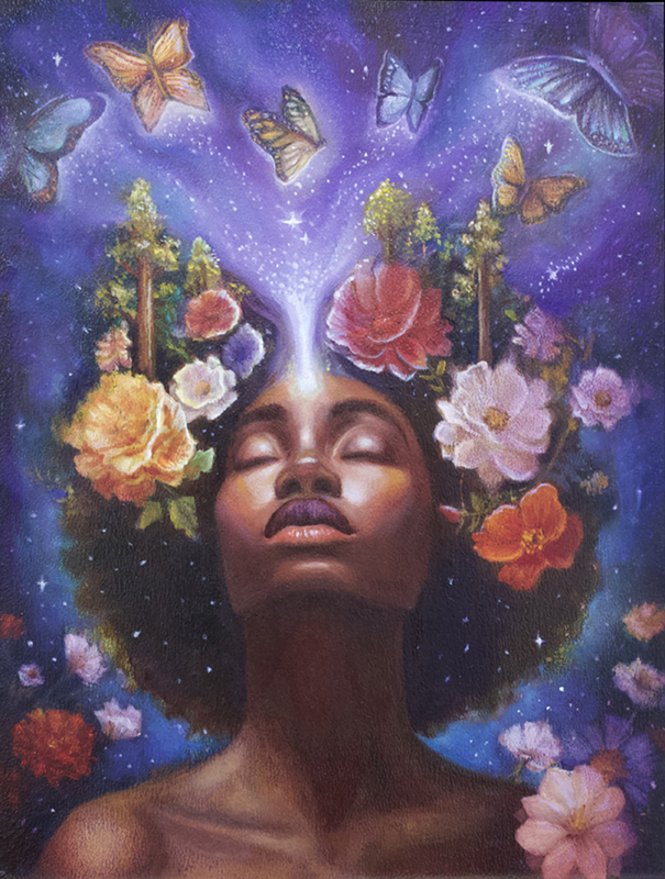 I am a New Mexican born artist who enjoys painting the misty and mystical, wild and free ethereal places where unseen greets seen, where dark weaves light, and land meets sea and sky. I appreciate the exploration of dreams, mythology, archetypes, alchemy and metaphysics. I am deeply inspired by nature….secret whispers from the desert winds, the language of trees, the power and magnificence of animals, the dynamism of the elements, and the infinity of the stars and cosmos. My work is primarily figurative and narrative, created mainly in oils. My current focus examines personal sovereignty inspired by Greek, Celtic, Spanish, French, African and Indigenous mythology. I strive for meaning and intention in each piece, and simultaneously enjoy the engagement found in pure process. I seek a feeling of transcendence in my paintings and desire for my work to touch the viewer with a sense of the divine.
