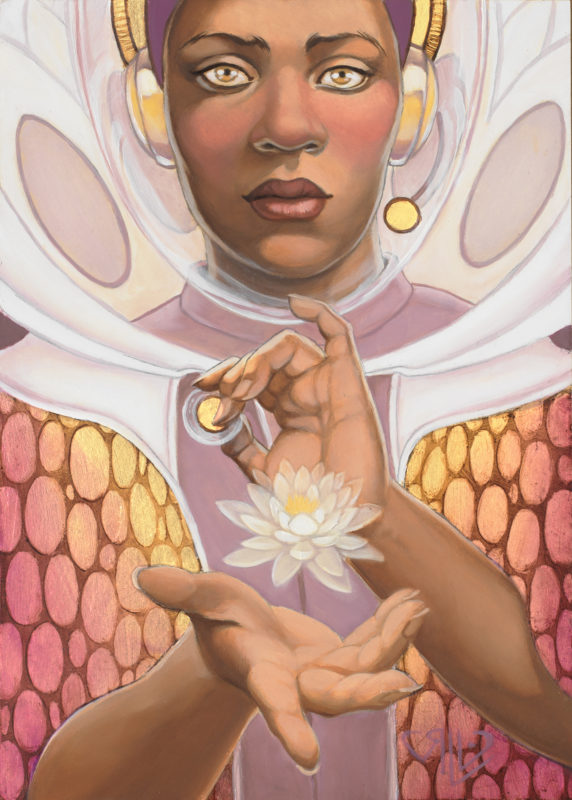Hello! I'm Rhonda Libbey, and Imaginative Realism artist and illustrator. I live in Pittsburgh Pennsylvania with my wonderfully supportive boyfriend and three silly ferrets. I have been a professional illustrator and graphic designer since 1996 and I have had the good fortune to work on some cool projects and I have shown in some great galleries. My most recent works are created traditionally in oil paint and gold leaf, with oil paint layered in glazes on top of the metal to achieve a luminous effect. I am drawn to the contrasts of delicate and bold that both oil paint and gold leaf possess.