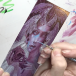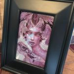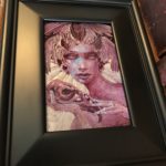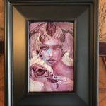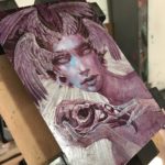 Siren is an exploration Acrylic on Aluminum, with the dramatic addition of engraving down through the paint, intaglio style. The rendering on the face is accomplished with crosshatching in tightly controlled value ranges, the lines of which complement the hatchwork engraving on the rest of the image. Creating a piece that can truly, only be experienced in person. The notable thing here is that the piece will change as you walk around it and the light shifts with your movement. In these days of easy reproduction it is my goal to create iconic work that is virtually unreproducible.
