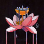 The Ace of Cups is about overflowing abundance and a radiance, both inwardly and outwardly. It can represent a peaceful solitary state. Lotuses are a symbol of an ascendance from the material plane, and just like the chalice in the traditional Rider-Waite deck, their blooms hover over the surface of the water. And as the card is about a radiant warmth, lotuses are capable of regulating the temperature of their blossoms to radiate a bit more heat and attract pollinators.