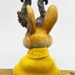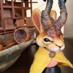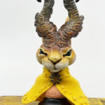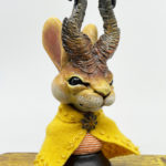 Aloysius is 6″ tall and roughly 2 1/2″ wide and created using resin, Magic Sculpt, wire, acrylic paint and textiles (wool and knit fabrics).