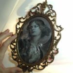 Aluminated is a 5×7 painting on aluminum, framed an antique Italian brass Frame with convex glass.