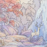 I used a very fine wash of metallic gold watercolor to make the warm light in this piece glow.