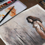 An original watercolor and gouache painting, on watercolor paper, 9 x 12 inches