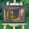 “Ashintully Gardens” is an original oil painting, 15″x11,” oil on stretched canvas, and mounted in a handmade black wood frame