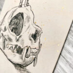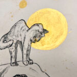 Ink and gold coliro watercolors on 5×7 toned drawing paper.