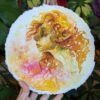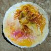 This is unframed watercolor on deckled edge watercolor paper ~8″ in diameter