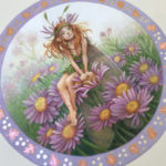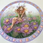 “Autumn Fairy” is inspired by my lifetime love for nature, fairy lore and fantasy artists. She is a gentle girl among the fall asters, a little sketch that became a painting. I sketch in the very early morning hours every day, and I am frequently surprised at what emerges. Most of my work is darker and more mysterious, but a few weeks ago, I found myself sketching sweet fairies, thinking about all of those wonderful Victorian fairy painters. I painted her on stretched print making paper with watercolor and gouache with gold, copper and silver accents around the border. 10 x 10″ – will ship world wide!