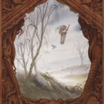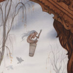 “Vasilisa came out on to a small glade. She looked, and she saw a hut standing there. The fence round the hut was made of human bones and crowned with human skulls. The gate was no gate but the bones of men’s legs, the bolts were no bolts but the bones of men’s arms, and the lock was no lock but a set of sharp teeth.”