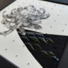graphite, ink, acrylic gouache, beads, resin and opals on watercolor paper.