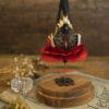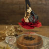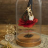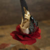 Hand-beaded wool Corvid skull emerging from cut silk flower with glass seed beads, & antique lace on brass