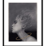 Each of these 18×24″ giclees will be hand signed, titled, and numbered. Allen will hand embellish each piece on the halo with gold leaf. The halo which is meant to bind her, not exalt.