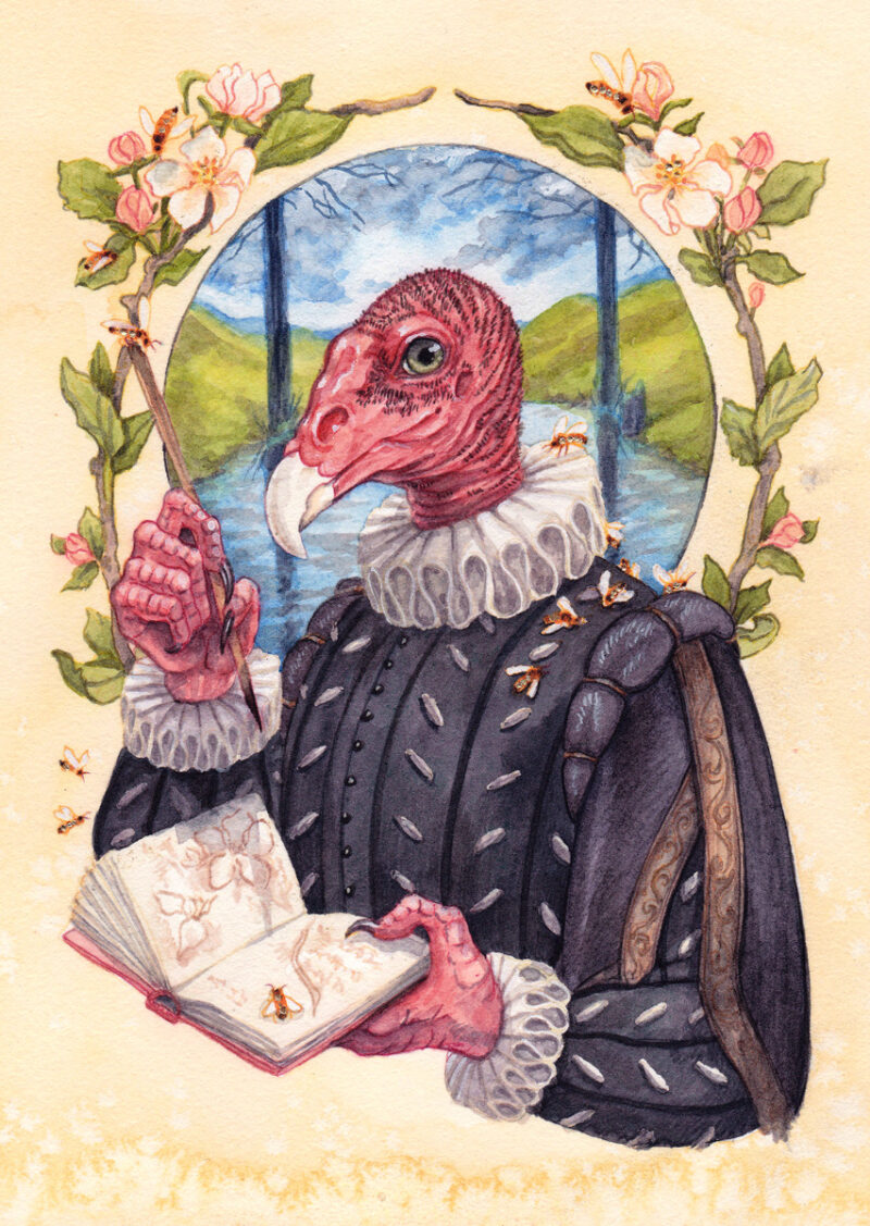 This fine (sparsely-feathered) fellow wants nothing more in life than to catalogue the blossoms of his apple trees and be a friend to all pollinators (not just the bees).