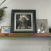 This piece is 8″ x 8″ and comes matted with a custom black frame measuring at 13″ x 13″
