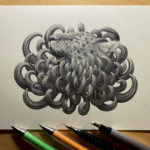 Following along the themes of much of Shawn’s work, this piece pairs an apex predator, the critically endangered Amur Leopard with the petals of a docile Chrysanthemum flower.