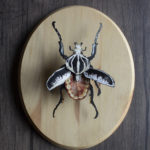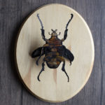 This specimen is part of my ongoing Paper Taxidermy series. It is created from layers of paper painted with acrylic ink, and then mounted to a wooden plaque. These pieces combine my love of illustration and ‘curiosities’, in order to make a painting come to life in small object form.