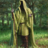 A figure cloaked with the verdant colors of the meadow, like a spirit or god of a natural place. Good or evil, maybe that has no meaning in the wild.