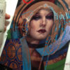 The 8th piece in my exploratory series of paintings on copper clad board. Executed in a FW ink and Acrylagouache underpainting with oil paint to finish. Pearlescent blue paint is brushed on. The final stage is to scribe back through the paint to the metal below, creating edges for light to catch on. The entire piece is then sealed in Gamar varnish.