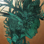 ‘Copper Queen’ is a painting study in metallic copper paint, ink, and gouache on 1-inch thick wood board.