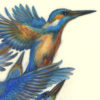 The iridescent blue, teal and orange of these birds is striking, and I really enjoyed building up their colors. I had a flow in mind of sweeping in from the bottom and curving up and out to the right, so I started with a sketch to get a feel of how their shapes might fit together. From there the others joined in organically as I worked through the drawing. I love how this piece turned out.