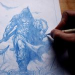 Death Dealer drawing in blue pencil.