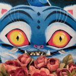 This painting is Acrylic on Wood, a cutting board to be exact.  The flowers will always stay healthy, they have a spell of protection on them to keep them from wilting.  And the pot is well balanced and a good weight to keep this from falling over.  Well, that is, if Derpy doesn’t knock it over.