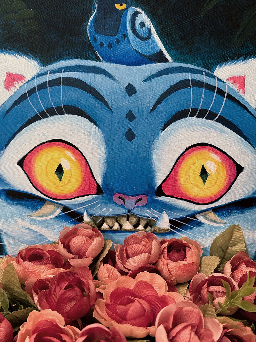 This painting is Acrylic on Wood, a cutting board to be exact. The flowers will always stay healthy, they have a spell of protection on them to keep them from wilting. And the pot is well balanced and a good weight to keep this from falling over. Well, that is, if Derpy doesn’t knock it over.