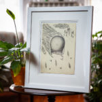 Art and Framing: 8.5″x11″. This work is graphite on vintage paper and professionally framed with archival materials. The drawings are floated within a double mat.
