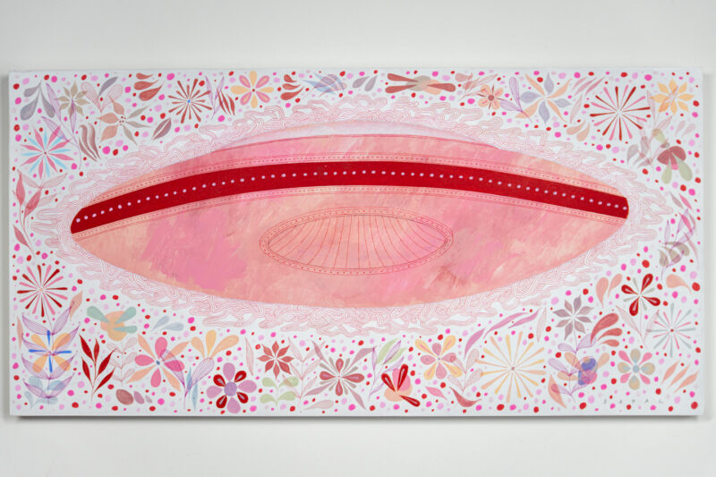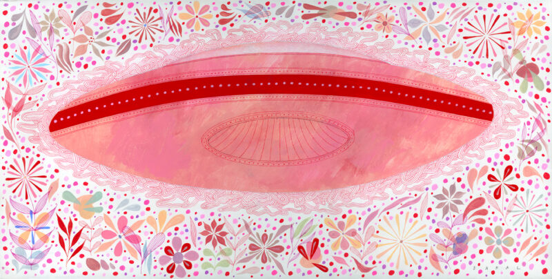 This is a painting titled Dim Stars: The Mothership. This piece is part of a collection of 20 pieces in the recent ‘Alien Transport’ series and solo exhibition. Five pieces in this series were just selected and awarded by the new 3×3 Magazine Annual competition!