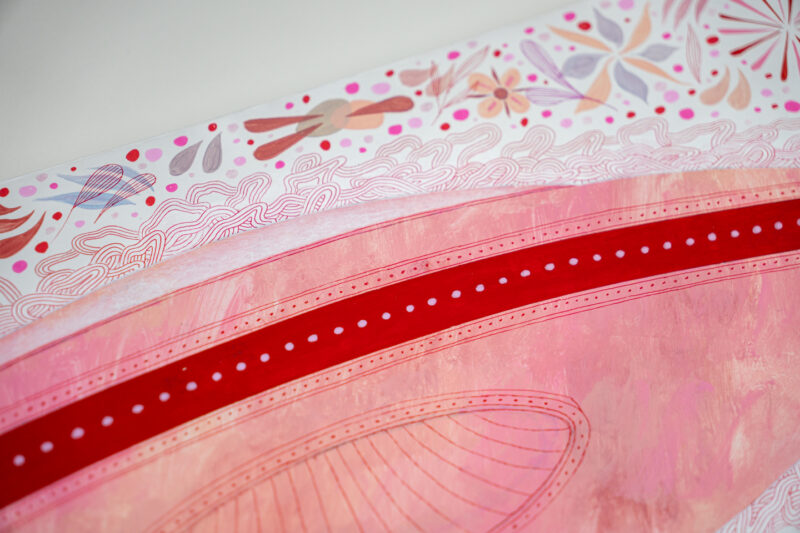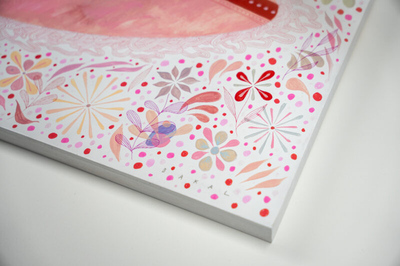 Art: 10″x20″. This work is mixed media on wood panel and wired for hanging. No frame needed to hang but I recommend a white floater frame if desired.