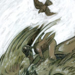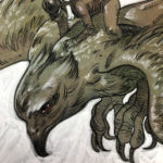 ‘Dive’ is a new ink, acrylic and gouache painting on masonite. Wanting to leave the ground for a sec, I chose to illustrate a fantastical griffin and her rider in a dive.