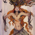 This is #2 out of three from my Botanical Witches series, “Dream Witch”. (The other two are Trap Witch and Spring Witch.) Her special powers are weaver of dreams and collector of shadows.