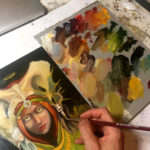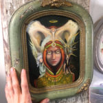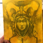 It’s been a while since I did a portrait, I started with sketching some faces until a character started to emerge. She was looking out at the viewer yet appeared as if she was off somewhere else in her thoughts, contemplating something important. I felt like putting a little demon on her shoulder, and then balanced it out with a cherub type creature on the right. What emerged was a picture of the balance between our internal voices, as we struggle to choose between our dual natures.