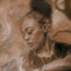 Her drawings are mixed media pieces often utilizing graphite, charcoal and pan pastels along with many other experimental mediums.
