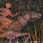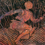 ‘Equus’ is a painting inspired by the motion of horses in water and knights on horseback. The painting is on illustration board and comes gallery framed and varnished. Total framed size is 22″ x 16.”
