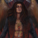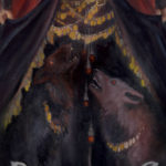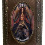 The allure of a vampire, a dark winged creature with his wolves, in a vintage parlor frame. This piece is for the gothic at heart~ perfect over a fireplace mantle or to watch over your bedside.