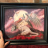Medium is oil over acrylic on board; gold enamel embellishments added to stars, teeth and other accents