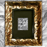 2.5 x 3 inches matted in an 8 x 10 hand leafed golden frame.