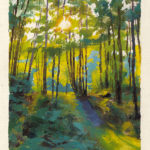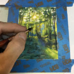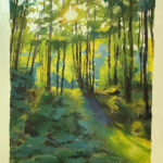 In time for Easter weekend, I changed gears and created a little oil landscape on board entitled “Evening Light,” with the sun blazing through the trees illuminating their leaves in fluorescent-like vibrant greens.